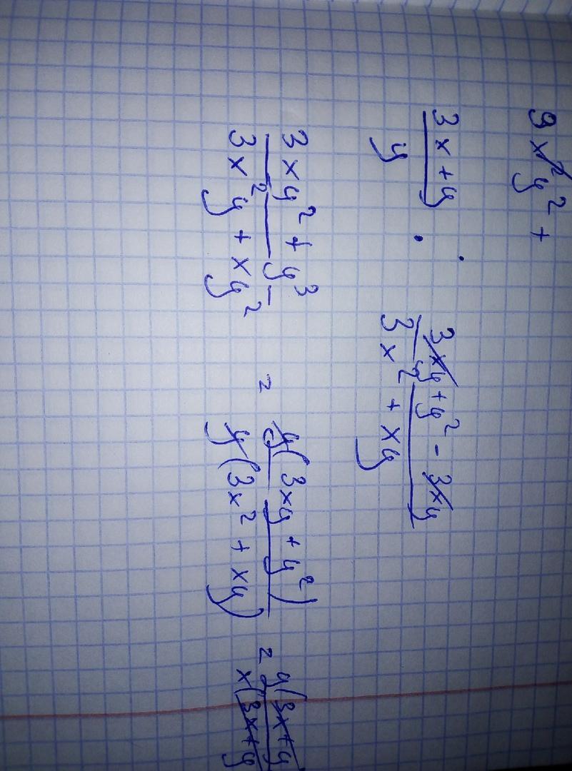 где вычитание приводишь к общему знаменателю соответственно умножая У(3x+y)-3y(x) .