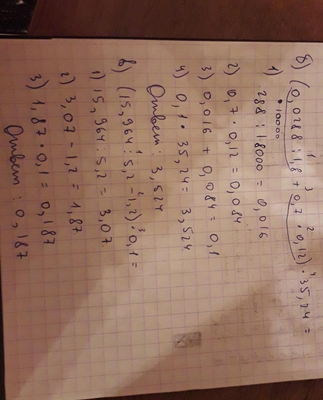 (15,964 ÷ 5,2 - 1,2) × 0,1 = 0,187