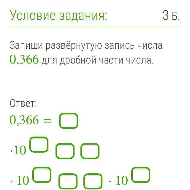 0,366 = 3 * 10^(-1) + 6 * 10^(-2) + 6 * 10^(-3)