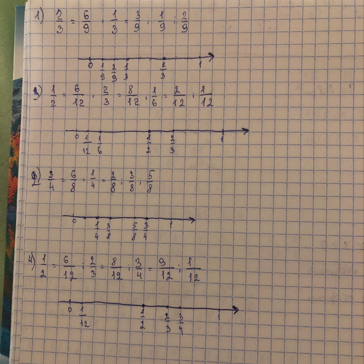 к к наименьшиму общему знаменателю и изобразите на координатном луче обыкновенные дроби