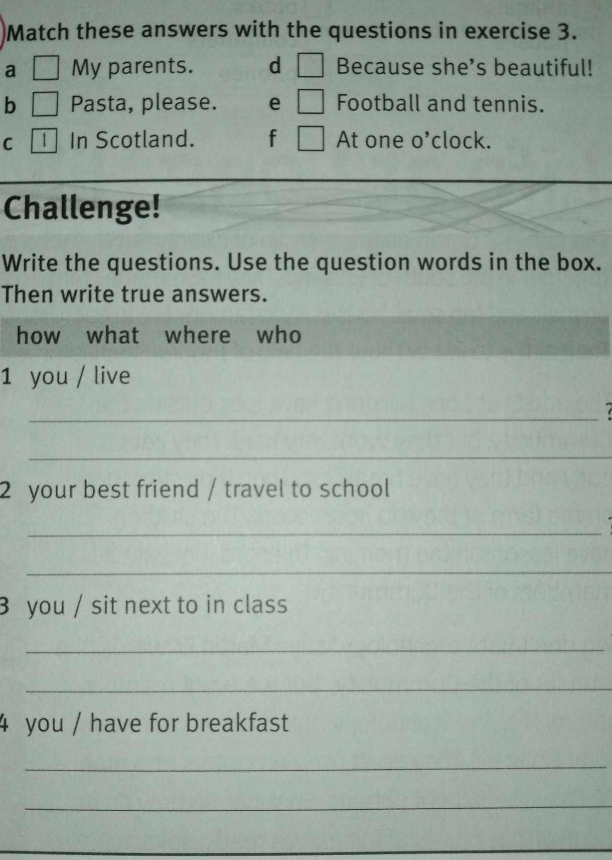1) Where do you live? Ответ: I live in...место, где живёшь