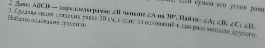 3-Средняя линия трапеции равна 30 см в одно из оснований в два раза меньше другого