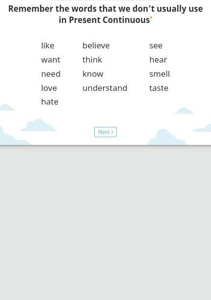 Перевод задания:помните слова которые мы обычно не используем в настоящем непрерывном.