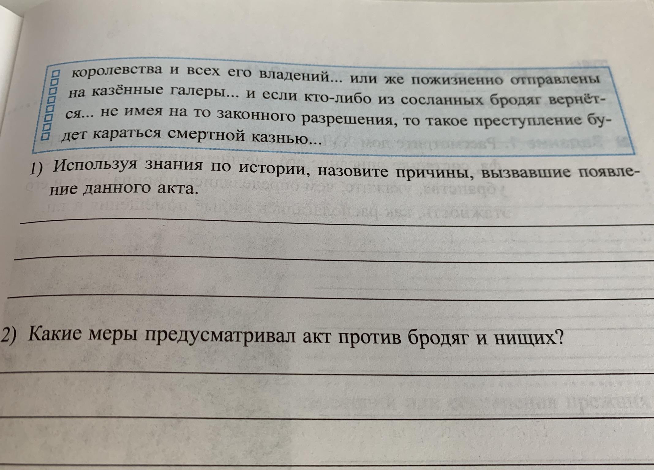 Короче им были не выгодны убогие против них стали делать кровавые законы 1 раз поймали кнут 2 раз тюрьма 3 раз висилица подать нищим нельзя не пошёл на работу убьют а работа была за копейки но жить хотелось их тогда звали люди ч обочины
