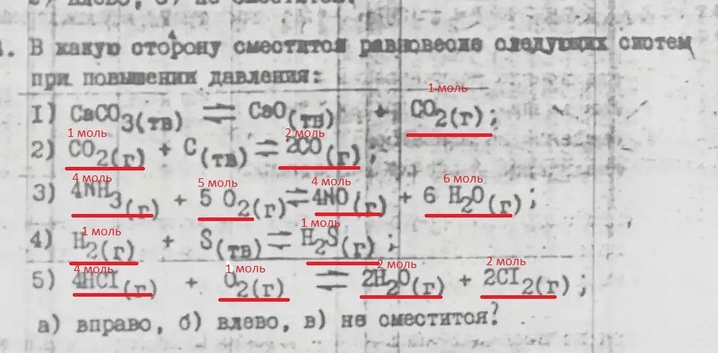 5) Слева 5 моль газов, справа 4. Сместится Вправо.