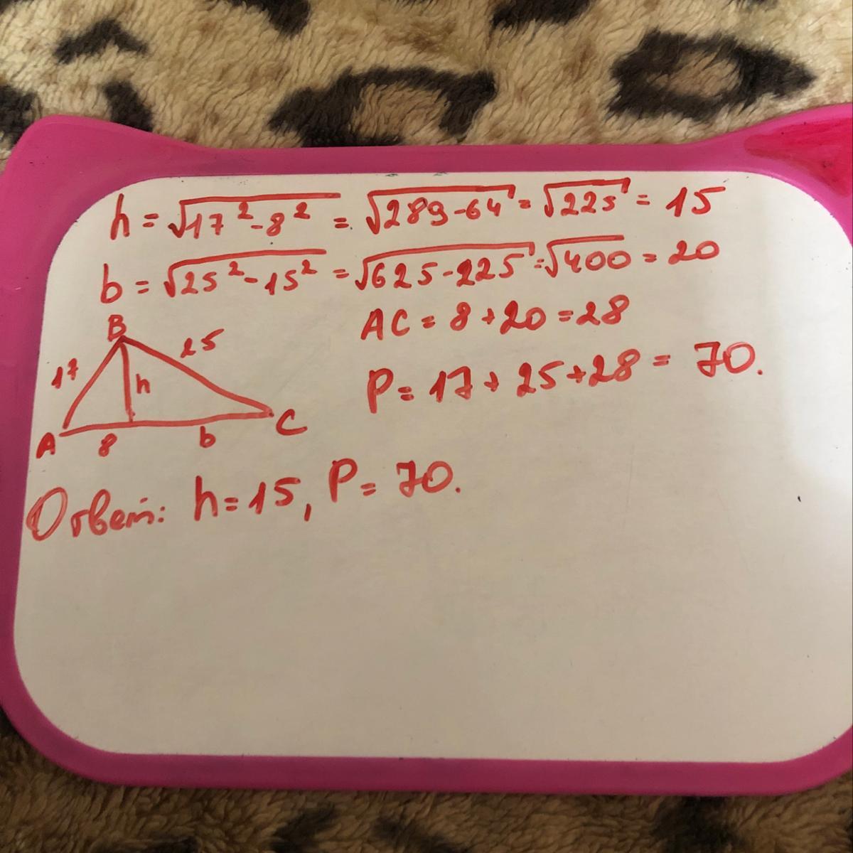 h²=17²-8²=289-64=225=15²