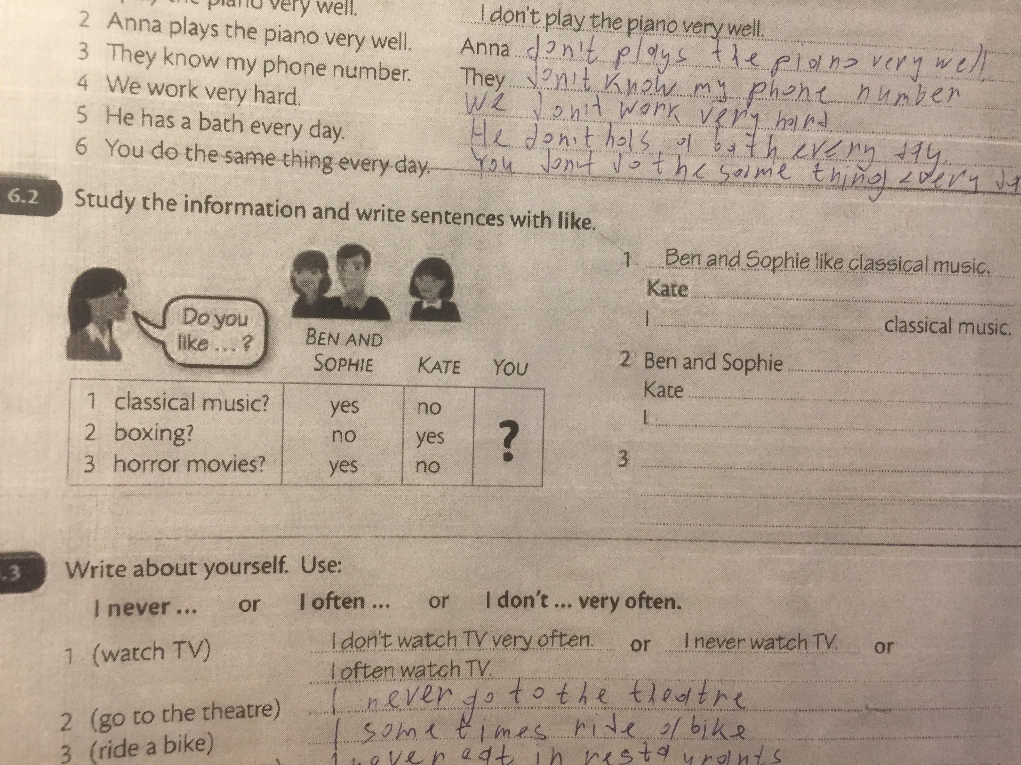 2.Ben and Sophie do not like boxing