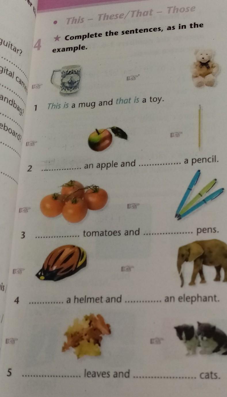 2) That is an apple. This is a pencil. 3)These are tomatoes. Those are pens.
