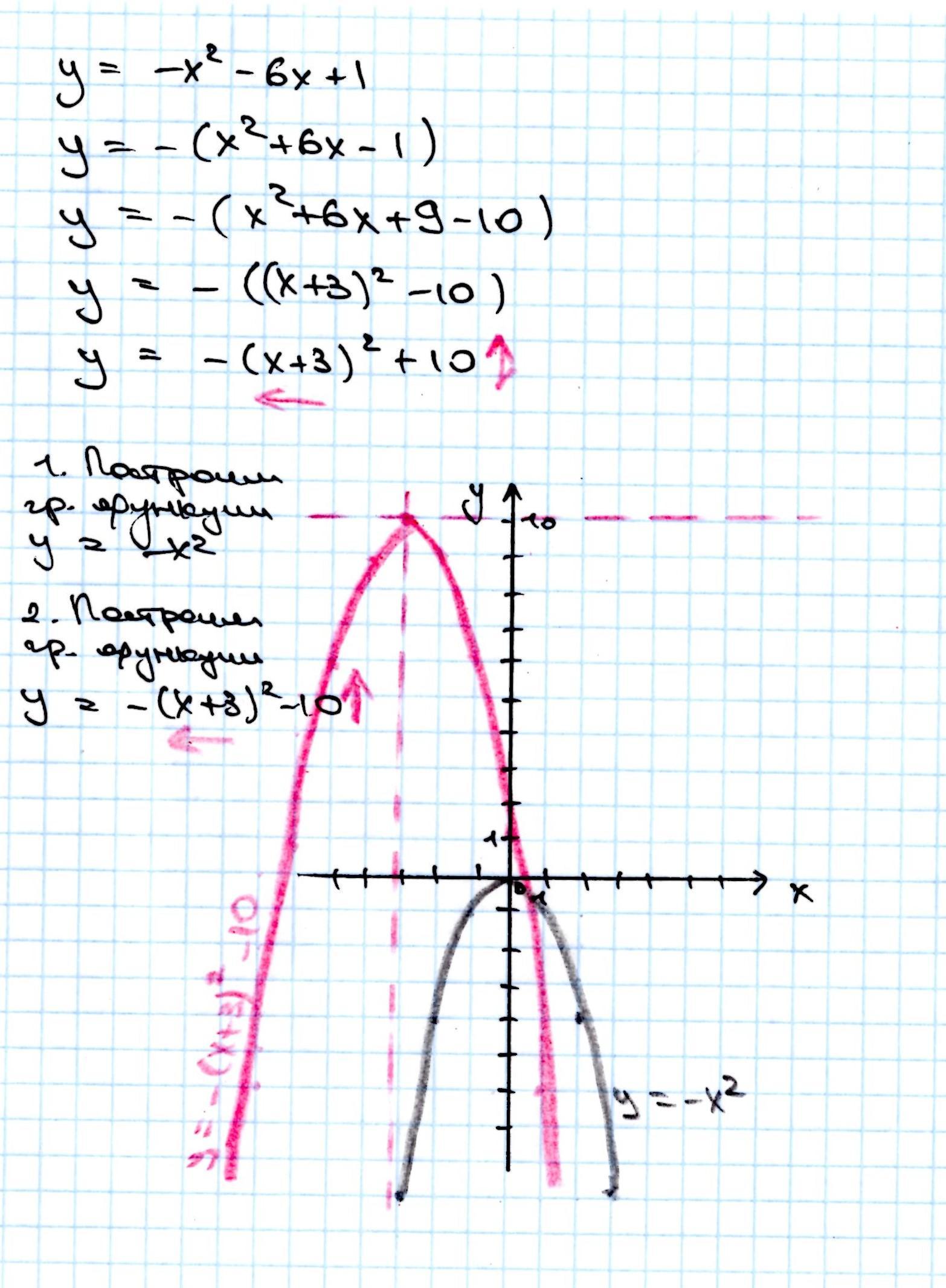 Помогите построить график функции y=-x²-6x+1 И описать его по плану построения квадратичной функции