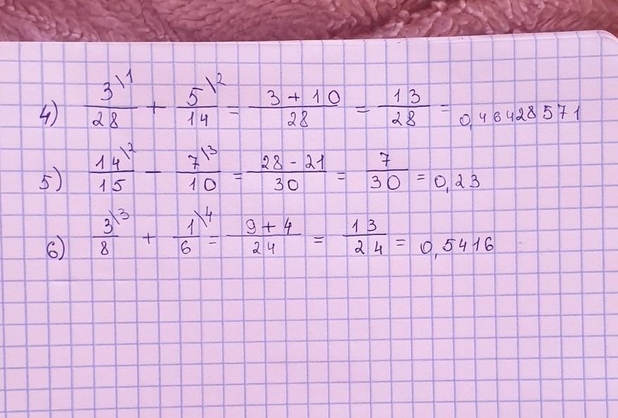 4. 3/28+5/14=3/28+10/28=13/28