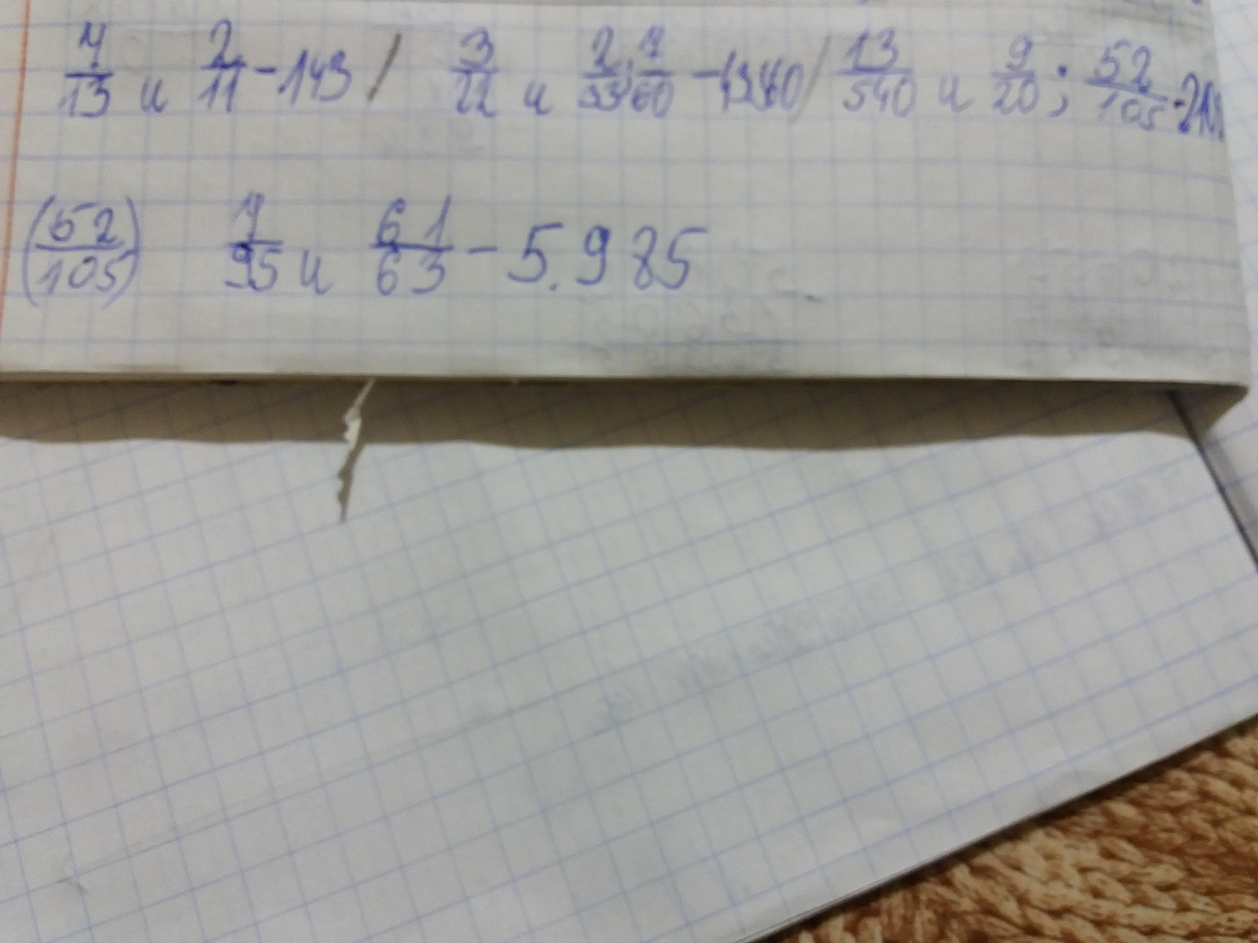 . Приведите дроби к наименьшему общему знаменателю:7/13и2/11 3/22и2/33 7/60 13/540и9/20 52/105 7/95и61/63