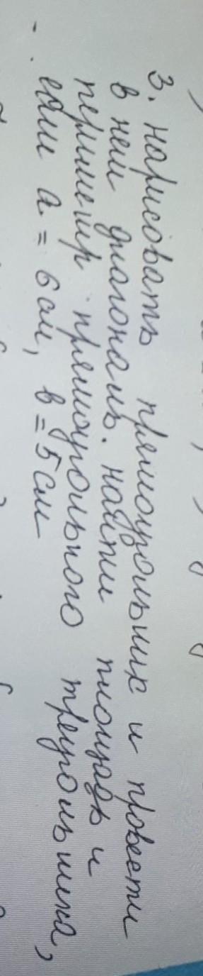 нарисовать прямоугольнике провести в нем диагональ Найди площадь и периметр прямоугольного треугольника если А равен 6 см равен 5 см