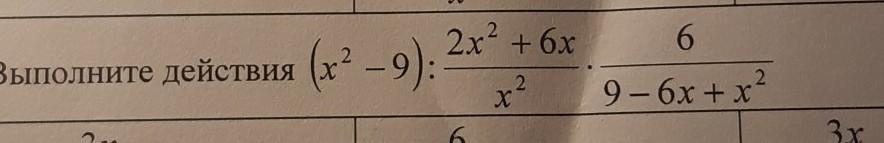 (x²-9)•6x²/(2x²+6x)(9-6x+x²)=(x-3)(x+3)6x²/2x(x+3)(3-x)²=3x(x-3)/(3-x)²=3x/x-3