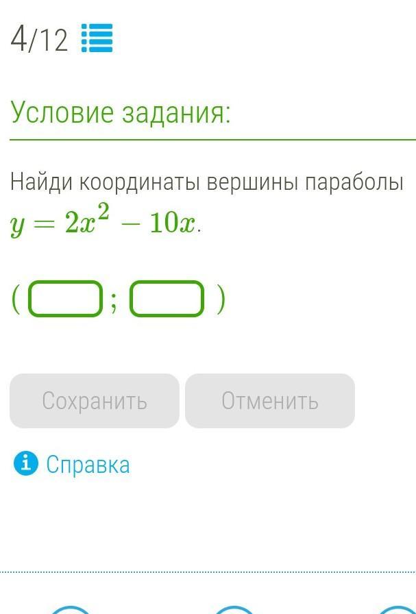 Объяснение: по условию а=2 в=-10 формула -в/2а=10/4=2,5-это абсцисса вершины параболы