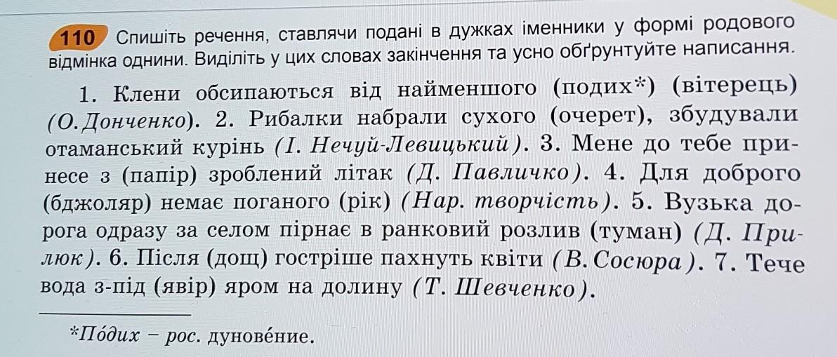 1. клени обсипаються від найменшого подиху вітерця 2. рибалки набрали сухого очерету , збудували отаманський курінь 3. мене до тебе принесе з папіру зроблений літак 4. для доброго бджоляра немає поганого року 5. вузька дорога одразу за селом пірнає в ранковий розлив туману 6. після дощу гостріше пахнуть квіти 7. тече вода з-під явора яром на долину.