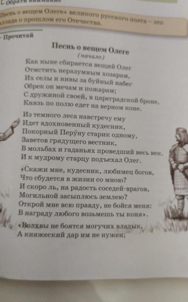 Существительные: хозарам, селы и нивы, набег, мечам и пожарам, дружиной, броне, по полю, коне, леса, кудесник, старик, вестник, век, мольбах и гаданьях, старцу, любимец, в жизни, радость, соседей-врагов, землею, правду, награду, волхвы, владык, дар.