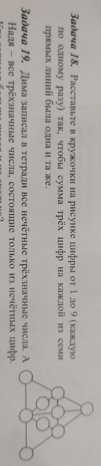 Задача 18. Расставьте в кружочки на рисунке цифры от 1 до 9 (каждую