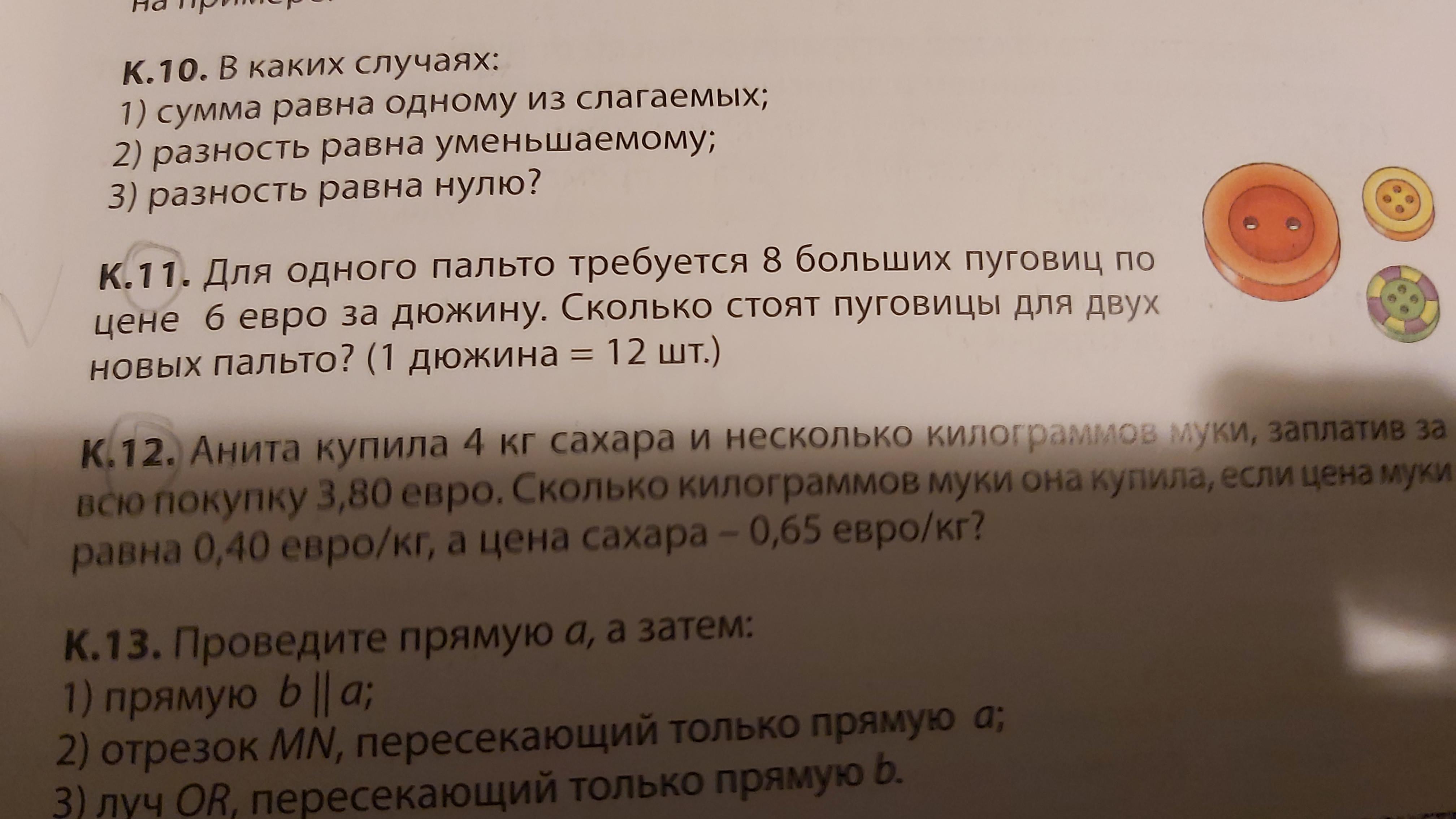 1) выясняем на сколько евро купили сахара : 0,65•4 =2,6(евро) за сахар