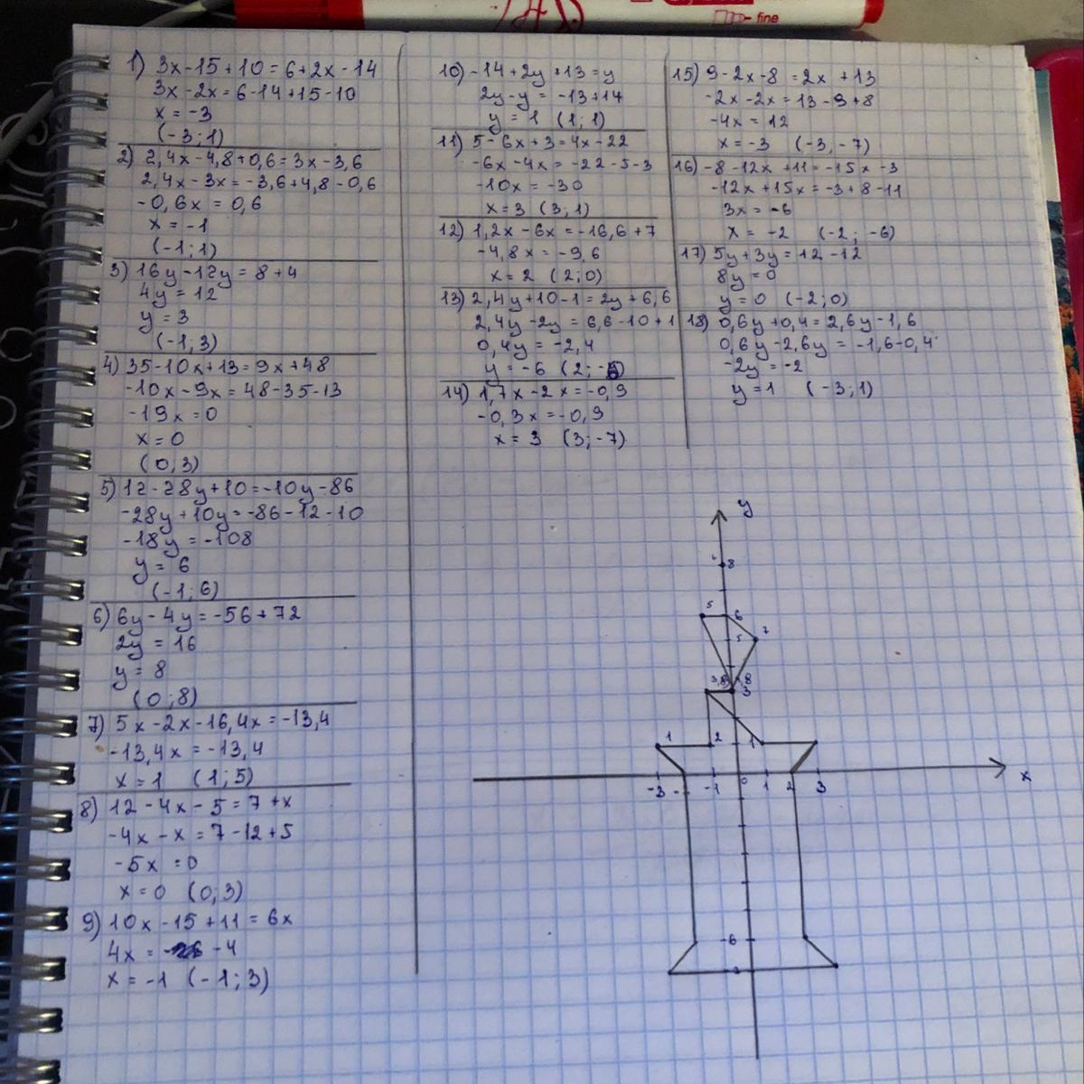 Соедините последовательно точки координаты которых узнаете решив все уравнения: