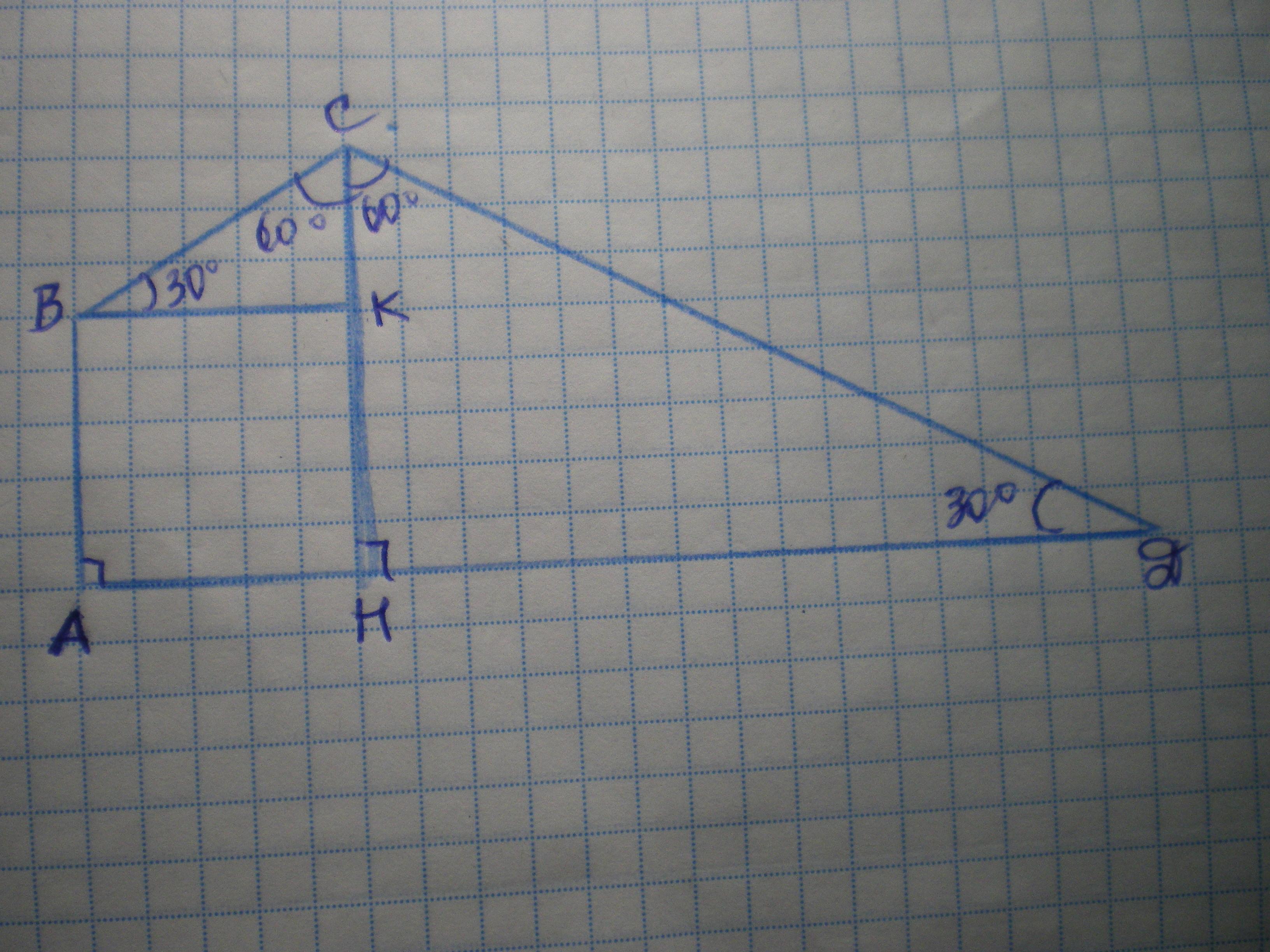 Рассмотрим ΔСНD - прямоугольный, ∠D=30°, ∠DСН=90-30=60°