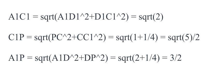 A1P = sqrt(A1D^2+DP^2) = sqrt(2+1/4) = 3/2