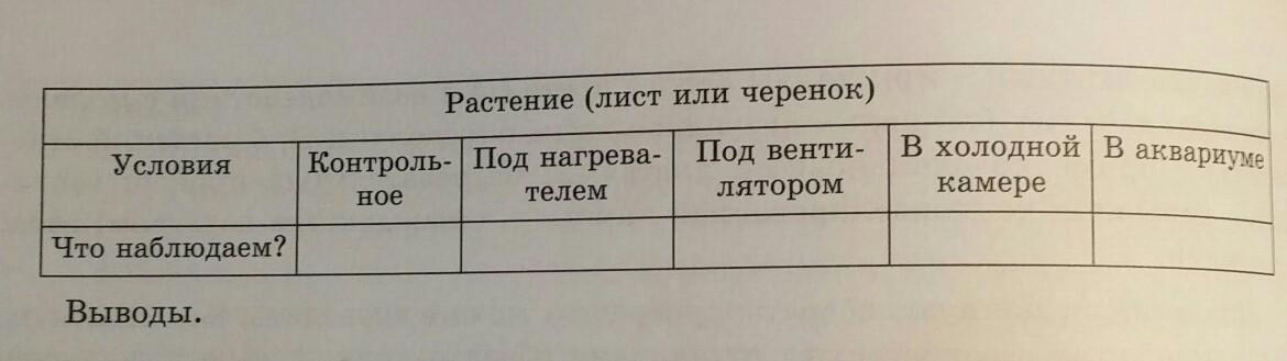 лабороторная 4.иследование внешних факторов .. температуры влажности. и давления водяного пара движения воздуха на процесс транспирации.Заполнить таблицу и вывод Помогите очень