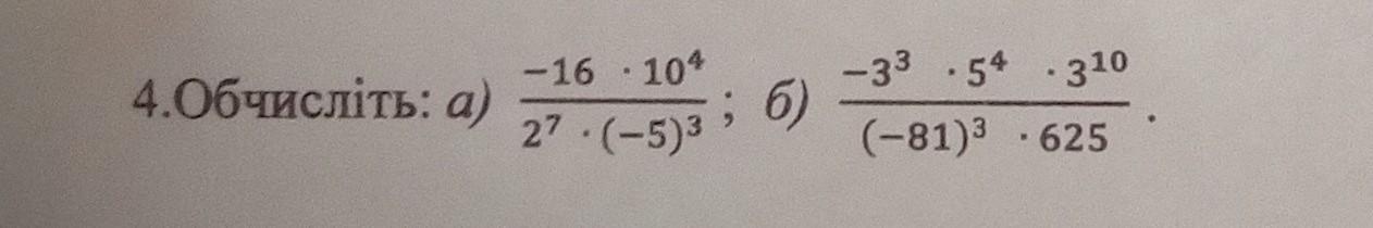 a) (-16*10^4)/(2^7*(-5)³= ( -2^4*10^4) /(2^7*(-5)³=