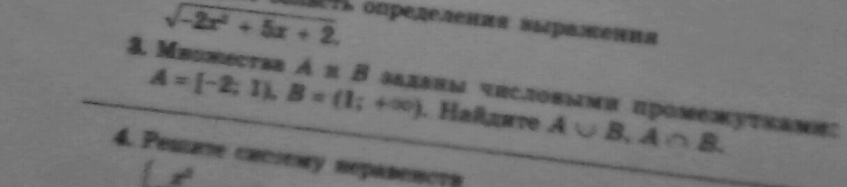 Множества А и В заданы числовыми промежутками: А=[-2;1), В=(1; +бесконечность). Найдите А U B, A пересекает В.