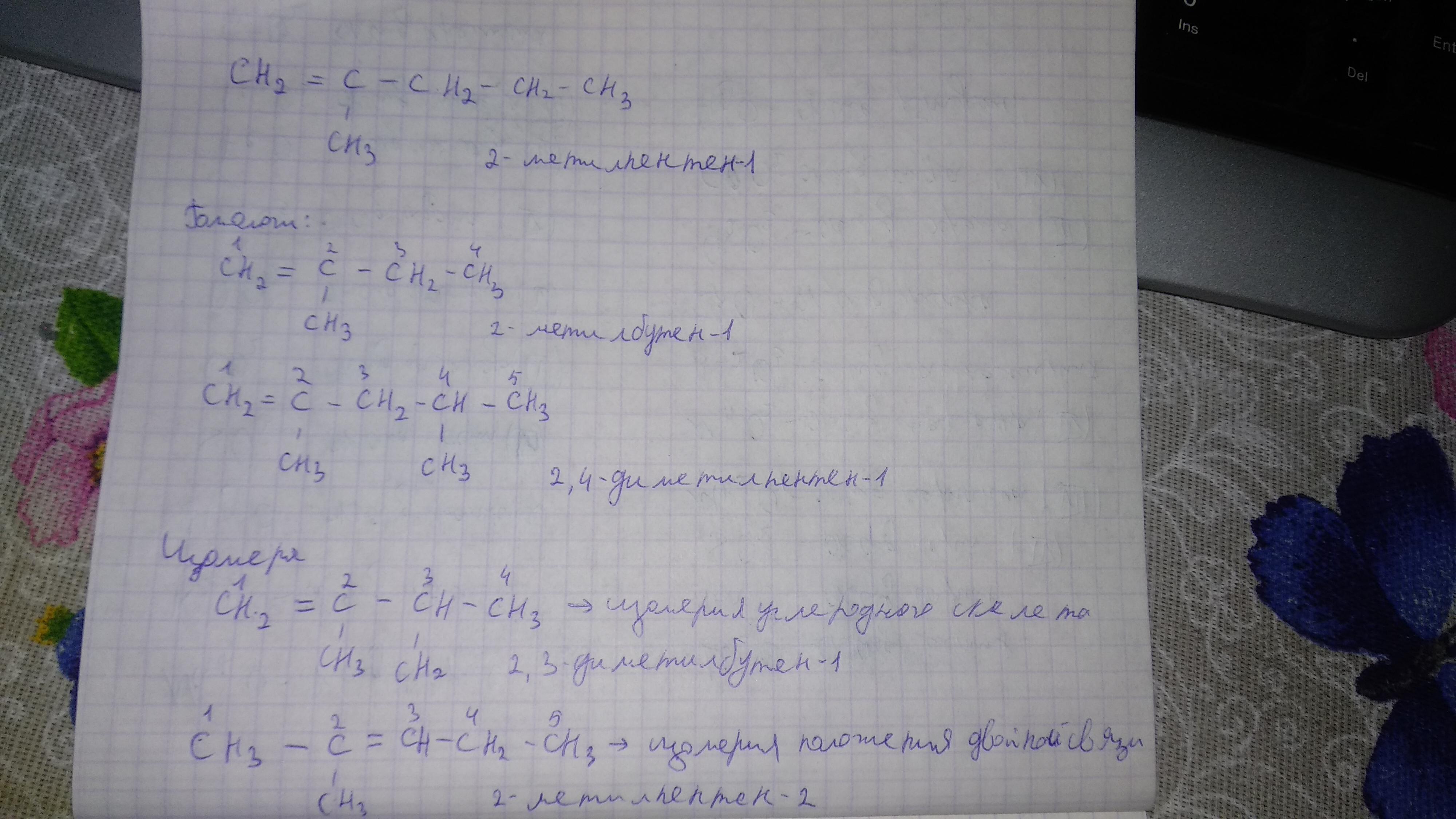 Ch2 = C(Ch3)-Ch2-Ch2-Ch2-Ch3 это гомолог 2 гомолог Ch2=C(Ch3)-Ch2-Ch2-Ch2-Ch2-Ch3 1-( 2- МетанГексен ) 2-(2-МетанГектен) (Это только гомологи)