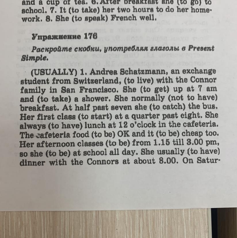 lives, gets up, takes, doesn't have, catches, starts, has, is, is, are, is, has.