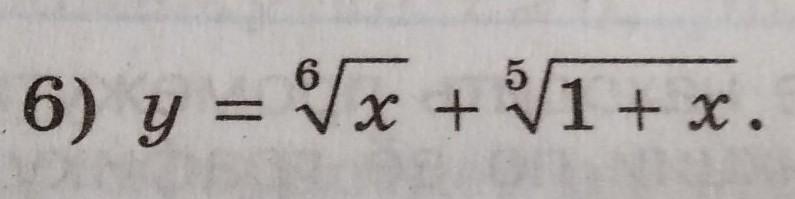 ![y = \sqrt[6]{x} + \sqrt[5]{1 + x} y = \sqrt[6]{x} + \sqrt[5]{1 + x}](https://tex.z-dn.net/?f=y+%3D+%5Csqrt%5B6%5D%7Bx%7D+%2B+%5Csqrt%5B5%5D%7B1+%2B+x%7D+)