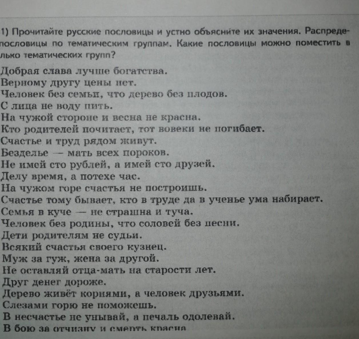 Есть пословицы про дружбу, про вражду, про труд и надо разделить пословицы на группы
