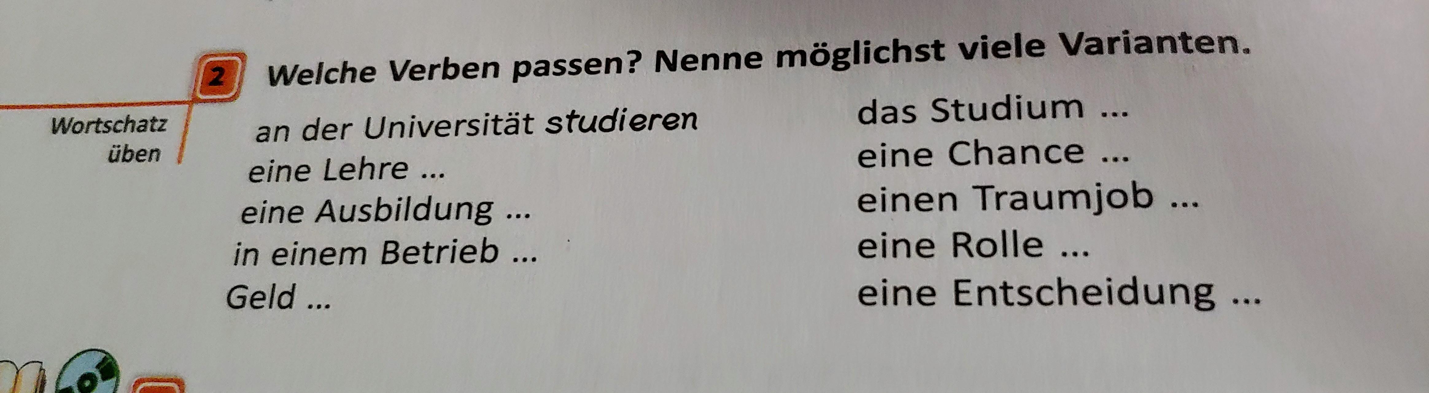 eine Ausbidung beginnen, machen, abschließen, erhalten, finanzieren