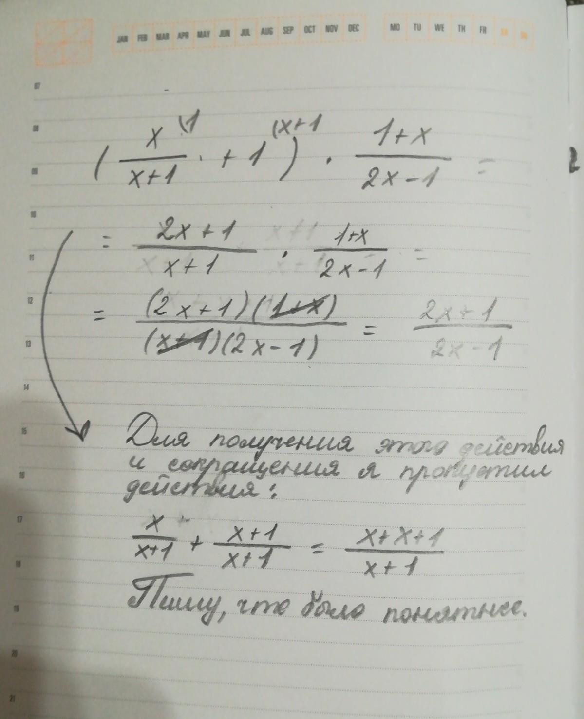 (х/(х+1) +1)•(1+х)/(2х-1)=(х+х+1)/(х+1) •(1+х)/(2х-1)=(2х+1)/(2х-1)