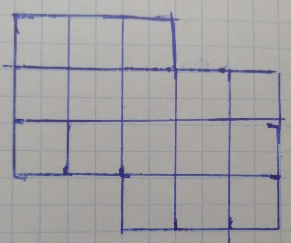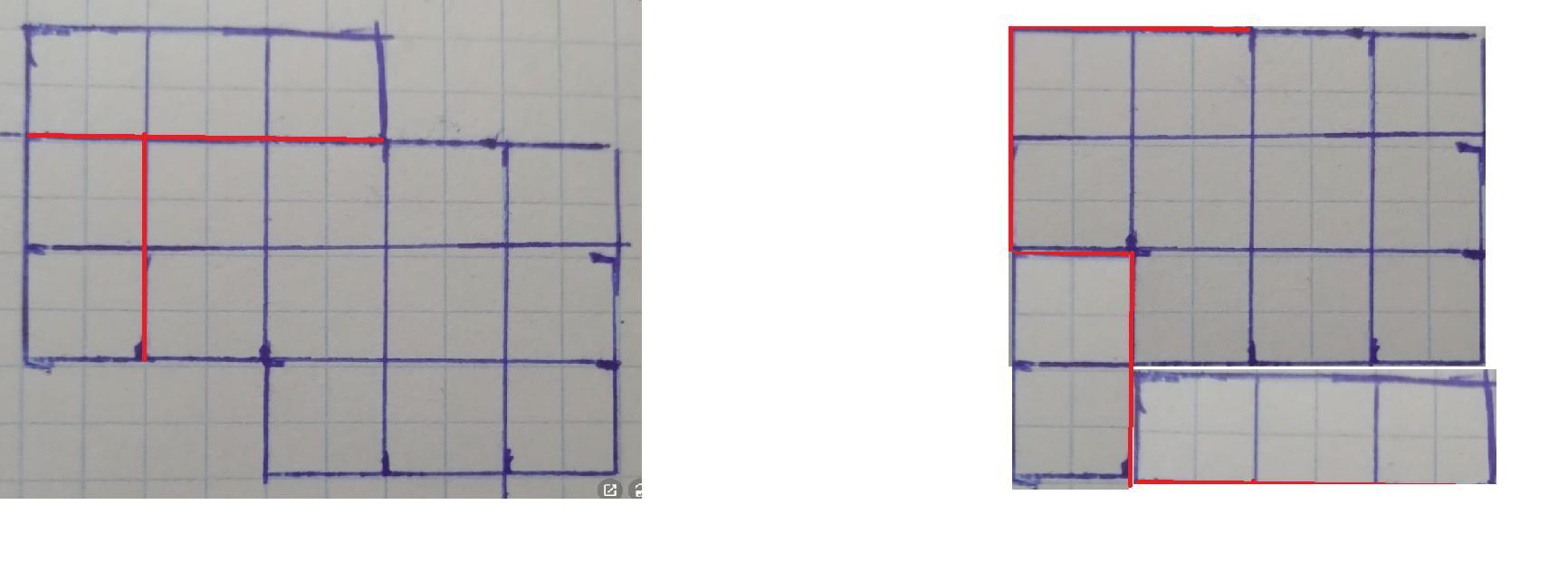 Разрежь фигуру на две части так, чтобы из них можно было составить квадрат(резать можно только по линиям). Можно отрезать и выбросить 2 клетки