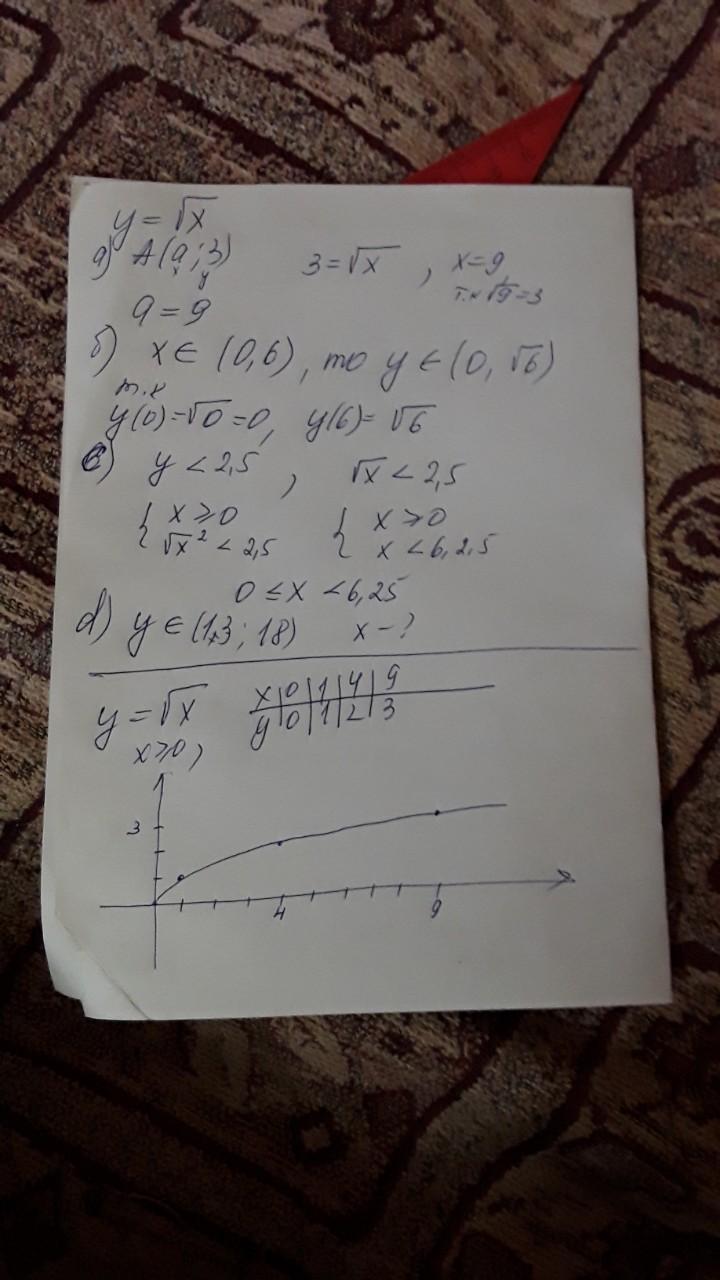 д) у=13 при х=169; у=18 при х=324 . Значит х принадлежит (169,324)