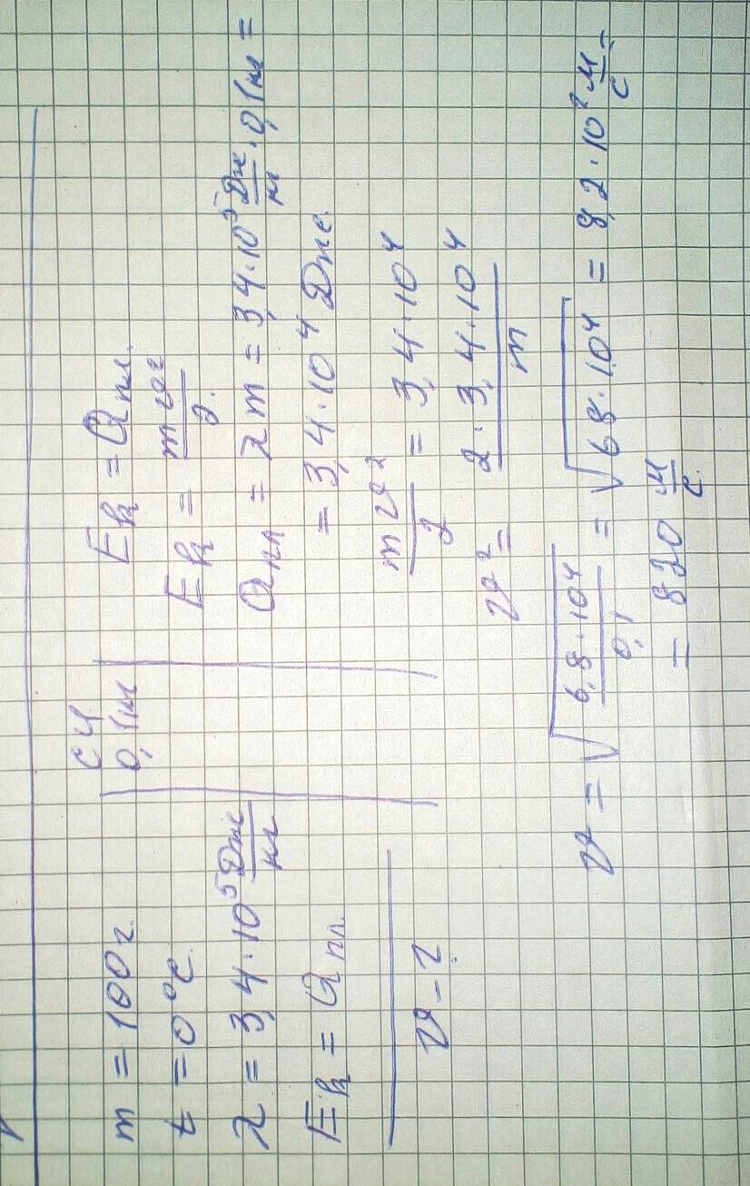 с какой скоростью нужно бросить кусок льда массой 100г чтобы его г нетическая энергия была равна количеству теплоты выделяющийся при плавлении этого куска льда , начальная температура льда 0