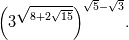 (√8 + 2√15)*(√5 - 3) = (√5+√3)(√5 - √3) = 5 - 3 = 2 => (3^(√8 +2√15))^(√5 - √3) = 3^2 = 9