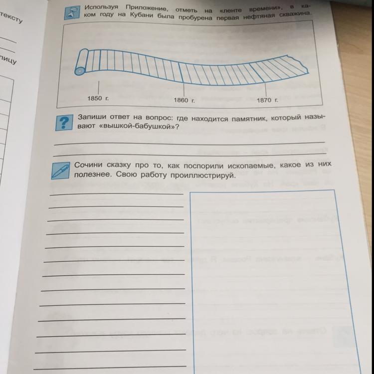 1. 1864г первая нефтянная скважина, то есть, посде 1860г отсчитай 4 полоски и там отметь.