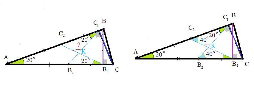 Тогда ∠С₁КС₂=180°-20°-40°=120°