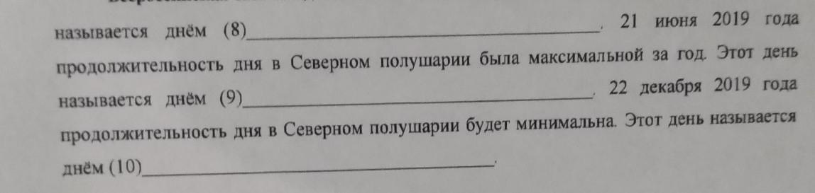 Ответ:9. Днём летнего солнцестояния.10. Днём зимнего солнцестояния.