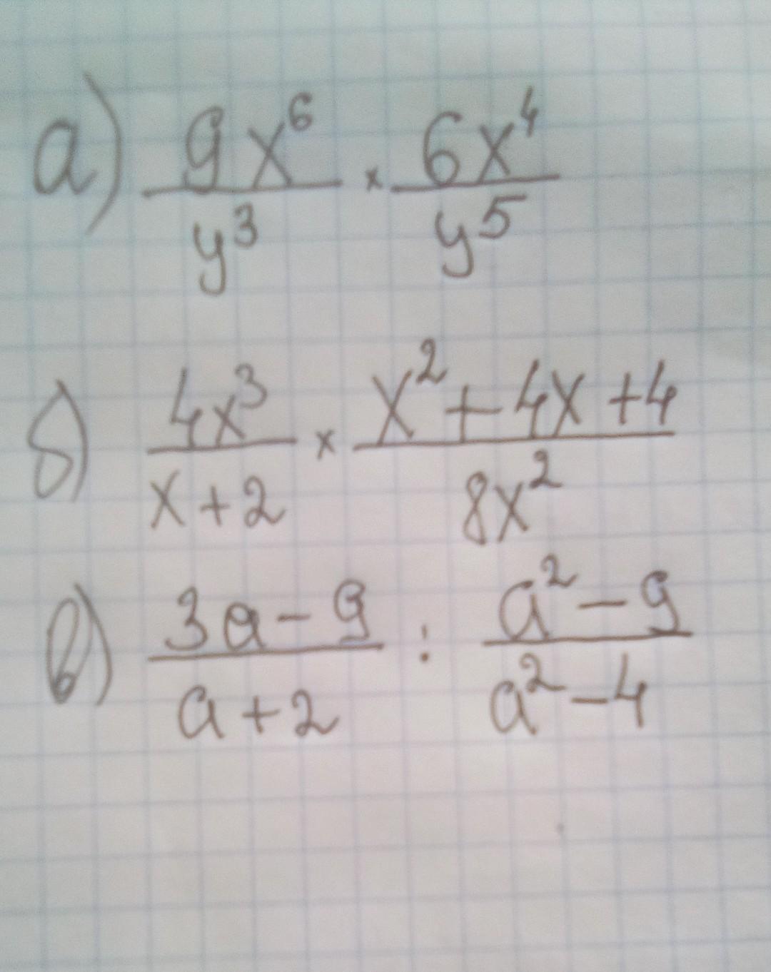в б) вот это длинное это формула сокращённого умножения (х+2)² и сократить все.В в) выносишь общий множитель 3(а-3)*(а-2)(а+2)