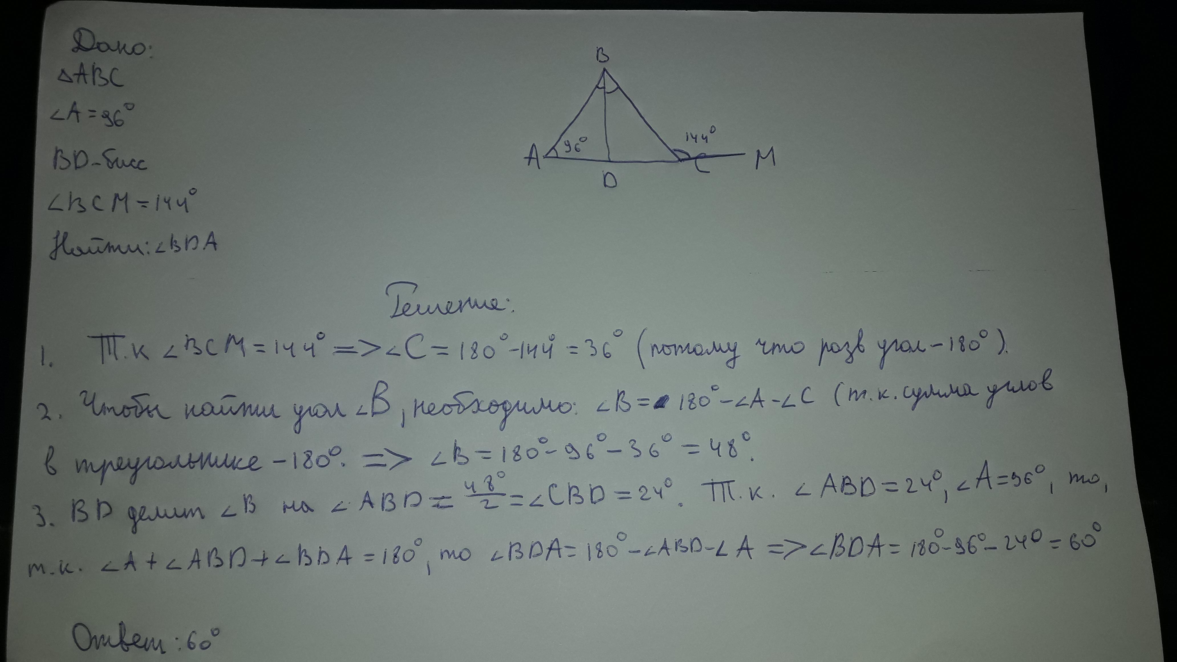 угла В, а угол, внешний углу С, равен 144°. Найти угол