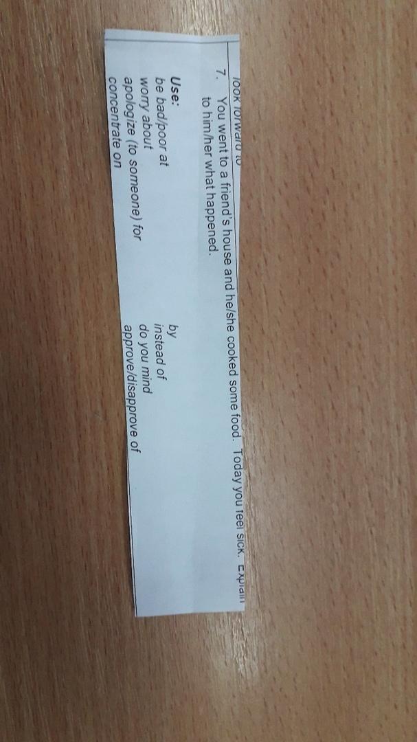 You went to a friend’s house and he/she cooked some food. Today you feel sick. Explain to him/her what happened.
