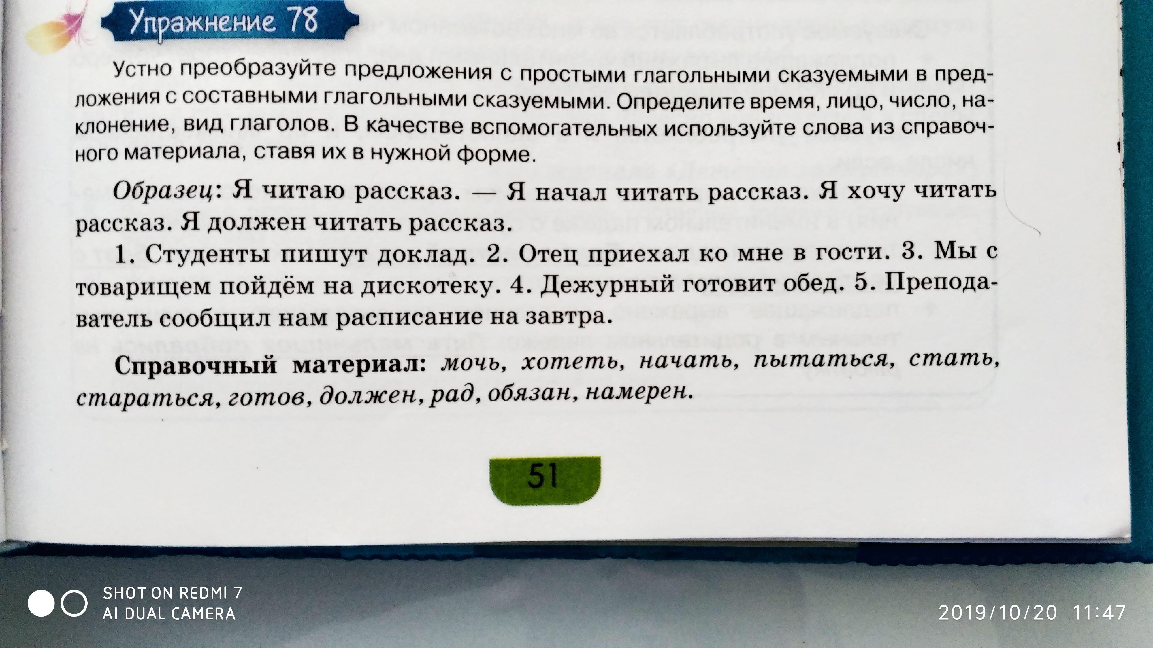4. Дежурный старается готовить обед. Дежурный начал готовить обед. Дежурный обязан готовить обед.