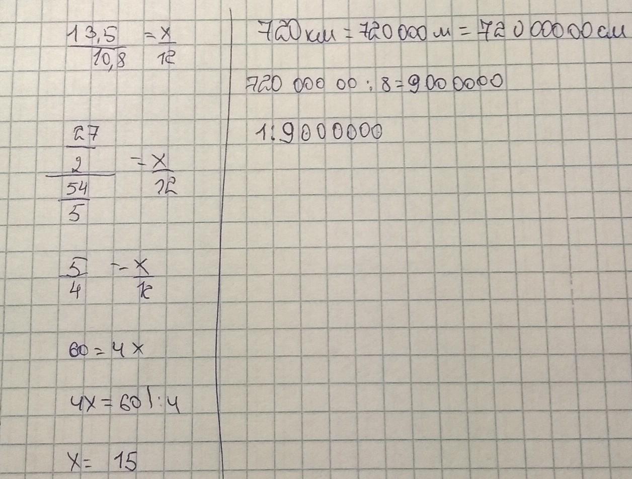 Найти неизвестный член пропорции 13,5 /10.8 =x/12