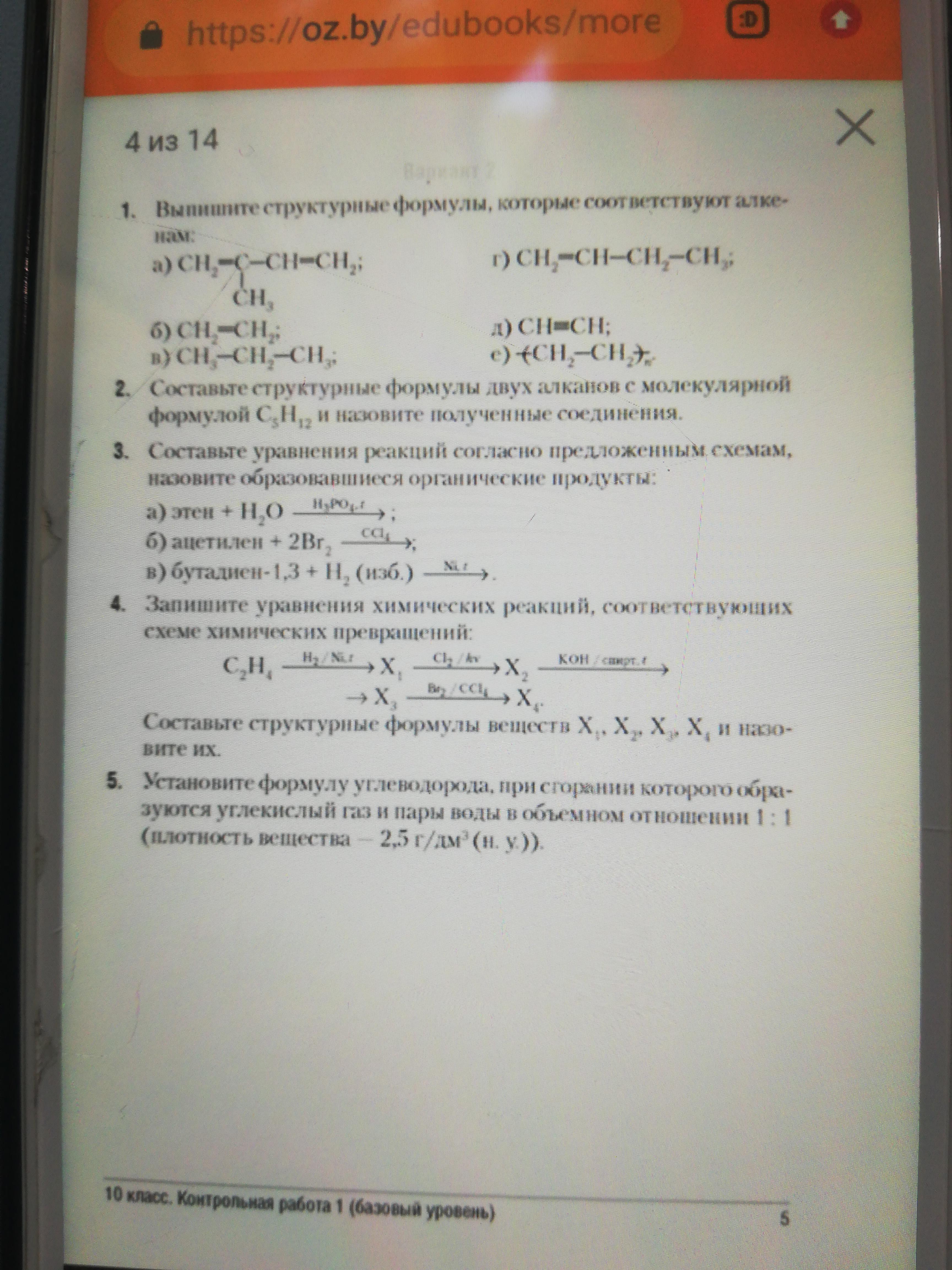 4) 1) C2H4+H2= C2H6