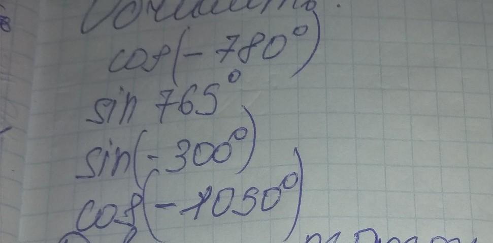 взялА) нужно выделить количество полных окружностей(360°) из данного угла: 765°=360+360+45°. получается 2по360 и 45)