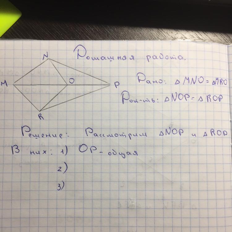 Стороны NO и RO принадлежат треугольникам NOP и ROP , а соотвественно равенству треугольнико -" если две стороны треугольника равны то равна и их третья сторона.