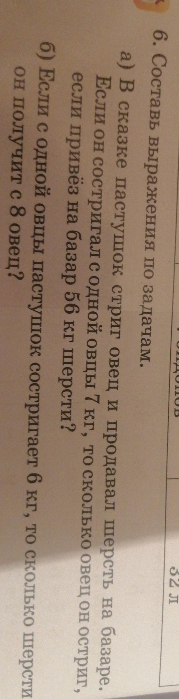 Ответ:а)56:7=8овец он остриг